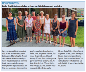 Ci-dessous un article du journal de la Broye remerciant les enseignants jubilaires qui ont fêté 10, 20 ou 30 ans dans l’établissement en 2023 ainsi que les 2 enseignantes qui ont pris leur retraite en juillet 2023.