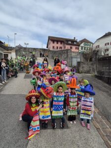 Merci aux 6 classes de Moudon et Lucens qui ont, au pied levé, créé des costumes pour participer au cortège du samedi après-midi!