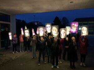 La nuit tombée, la ville de Moudon est plongée dans le noir illuminée aux seuls flambeaux des élèves des classes moudonnoises et lucensoises.