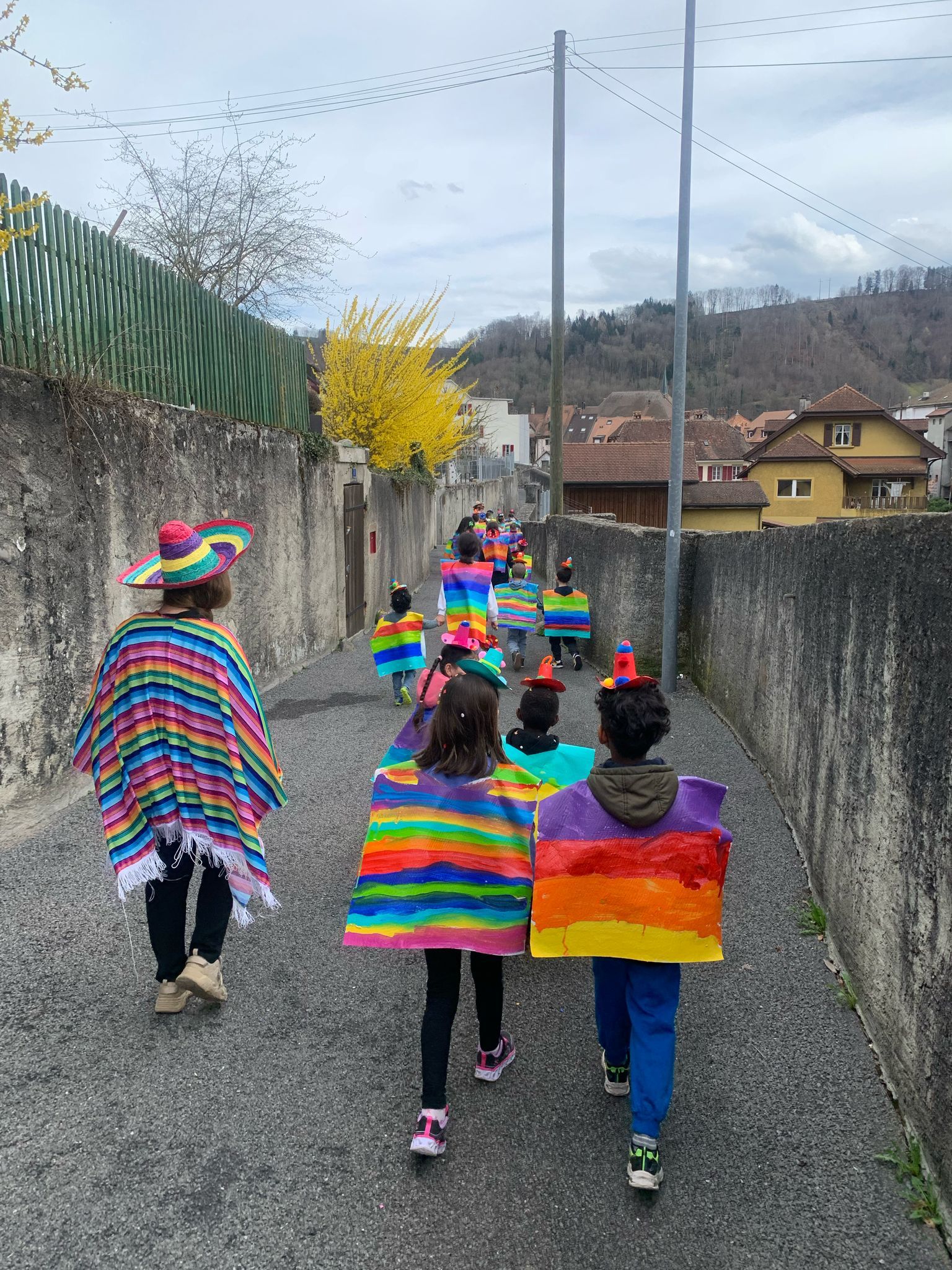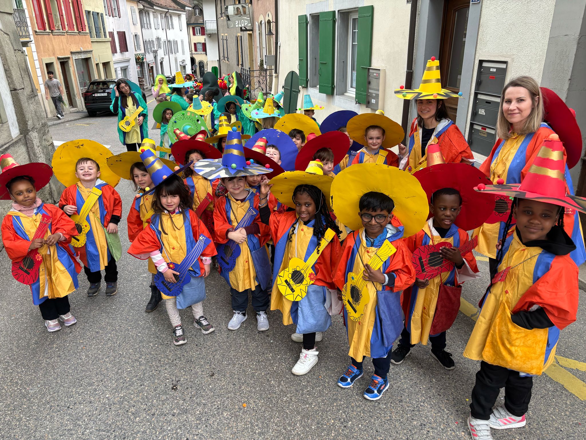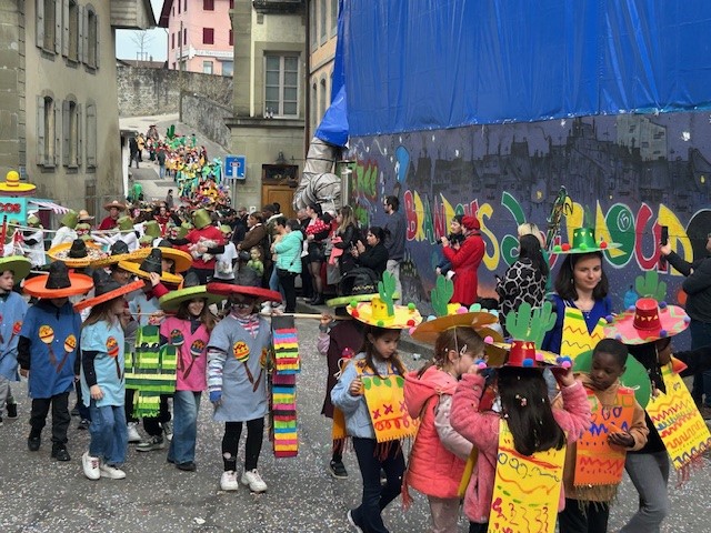 Merci aux 6 classes de Moudon et Lucens qui ont, au pied levé, créé des costumes pour participer au cortège du samedi après-midi!