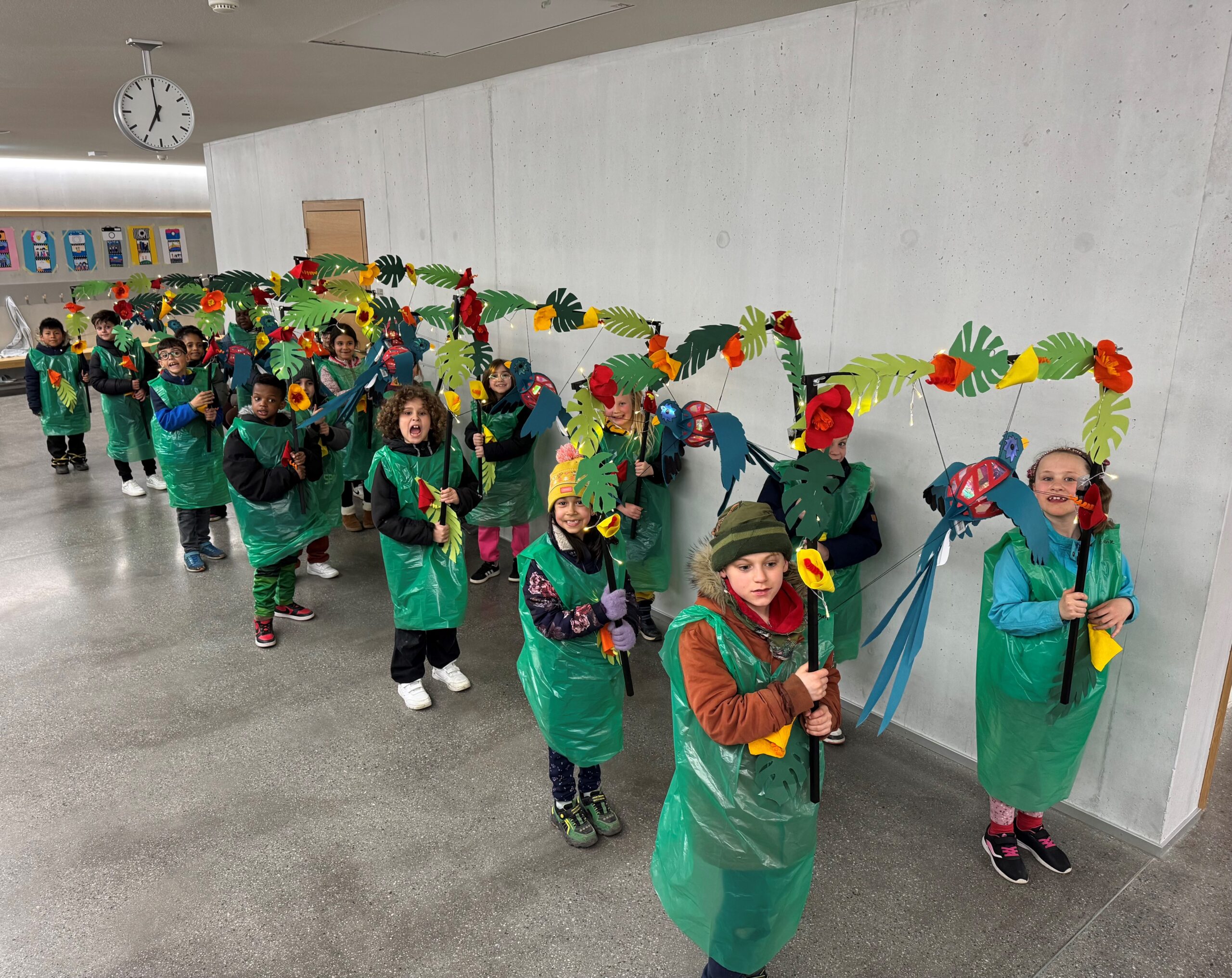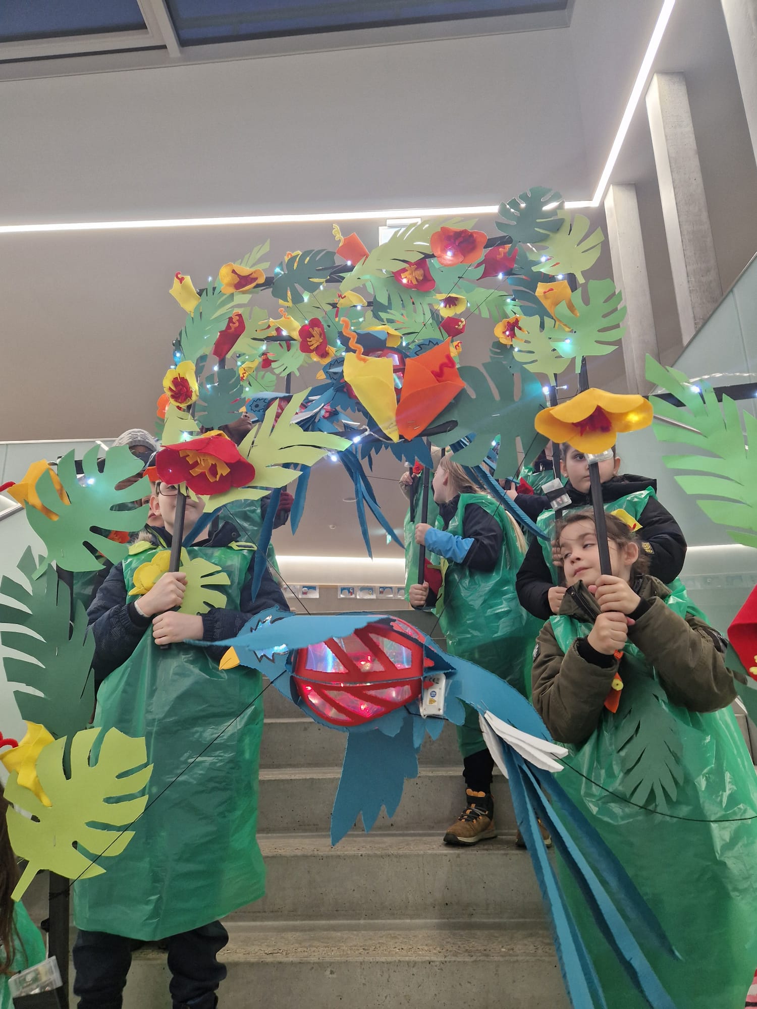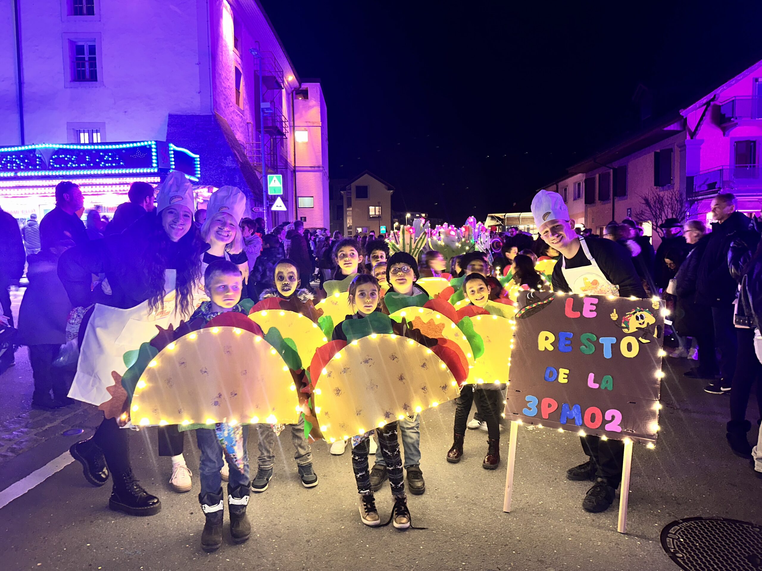 Merci aux 6 classes de Moudon et Lucens qui ont, au pied levé, créé des costumes pour participer au cortège du samedi après-midi!