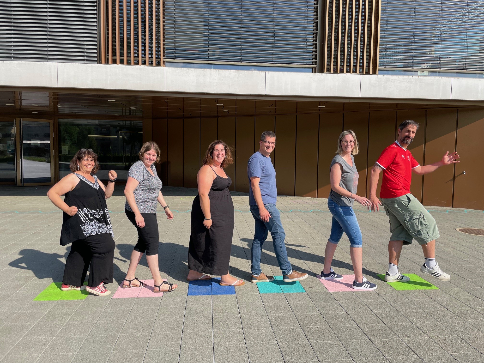 De gauche à droite: Katia Savary (30 ans), Sophie Zysset (directrice EPMLE), Licia Sampogna (10 ans), Sébastien Jung (municipal des écoles à Lucens et membre du Codir AISMLE), Magali Minder (20 ans) et Oliviero Fortini (10 ans). Manque Cécile Streit (10 ans).