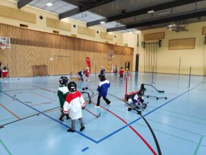 Quelle belle découverte pour eux ! Ils ont pu jouer, travailler leur équilibre et manier la canne. Peut-être que cela créera de nouvelles vocations. Autant les enseignantes que les élèves ont apprécié cette animation. Merci Christoph et “Swiss Ice Hockey”.