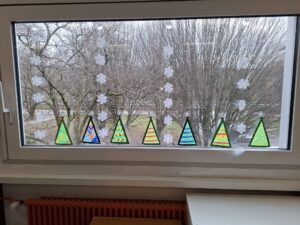 Au lieu de servir de barrière, la vitre a servi de support pour que les pensionnaires y dessinent de belles fresques alors que les enfants profitaient de la neige fraîche pour fabriquer des bonshommes de neige. Et pour la traditionnelle chantée de Noël, les lutins avaient un micro sans fil dehors et le haut-parleur diffusait leurs mélodies dans l’établissement qui les admirait à travers la vitre: bien mieux que le petit écran!