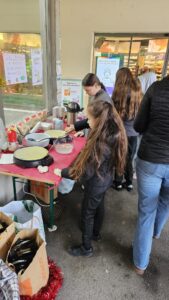 Les élèves de la 7P/LU3 accompagnés de leurs enseignants Flaviano Diego et Cottier Coralie ont tenu un stand de crêpes et vente de thés au marché de Lucens. L’enseignant souligne le travail formidable qui a été réalisé par les élèves. Ils ont été dans la peau d’un épicier en pesant le thé, préparant les sachets et collant les étiquettes. Ils ont également enfilé la casquette du cuisinier pour préparer plus de 10 litres de pâte à crêpes. Cette préparation a permis de réaliser de nombreuses et savoureuses crêpes que grands et petits ont pu savourer au marché de Lucens.