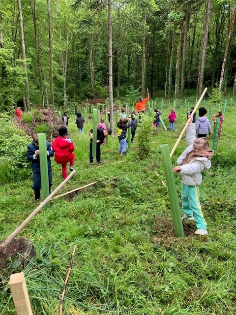 Dans le but d’instaurer une tradition locale pérenne, le garde-forestier régional et son équipe ont organisé une sortie qui a permis aux élèves de 3P (et de la 3-4P/LU4) de planter un arbre sur le domaine communal “l’arbre des 7 ans”. En plus d’avoir planté leur arbre, les enfants ont également fait du LandArt, participé à des échanges avec les animateurs présents pour découvrir la forêt et dans un but de sensibilisation, ramassé des déchets.