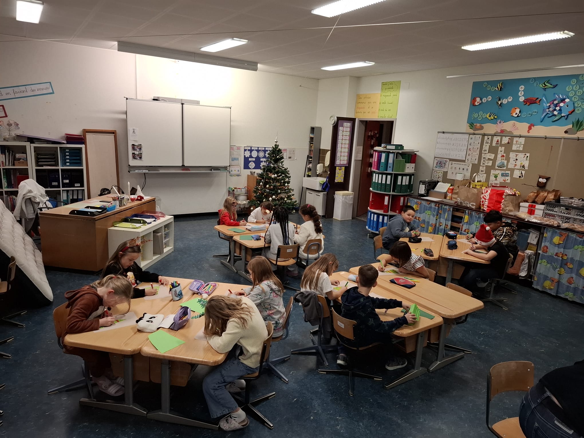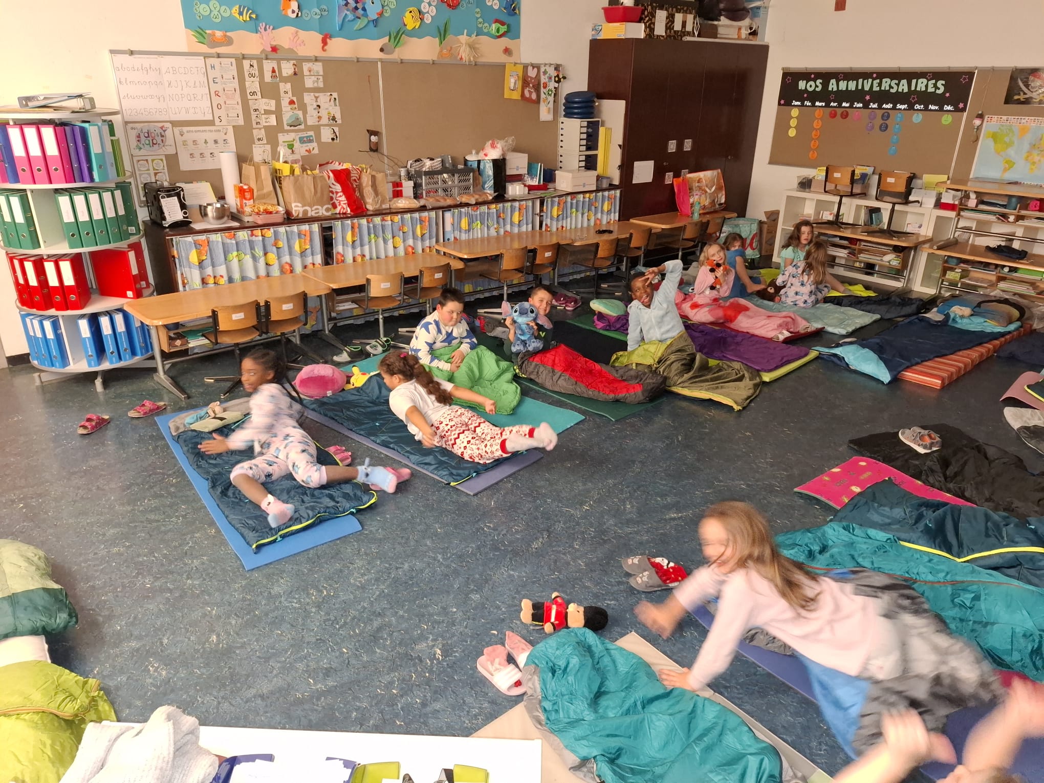 Magali Minder et Sylvie Marti, les deux enseignantes de la 4P/LU2 ont proposé à leurs élèves une soirée “Préparation de Noël” en classe le vendredi 29 novembre. Ensemble les élèves et leurs enseignantes ont préparé le calendrier de l’Avent, décoré le sapin ainsi que la classe, regardé une histoire de Noël et pique-niqué tous ensemble. Puis pour ceux qui le souhaitaient, ils ont pu passer la nuit en classe (matelas de camping ainsi que sac de couchage). A leur réveil, un petit-déjeuner a également été préparé.