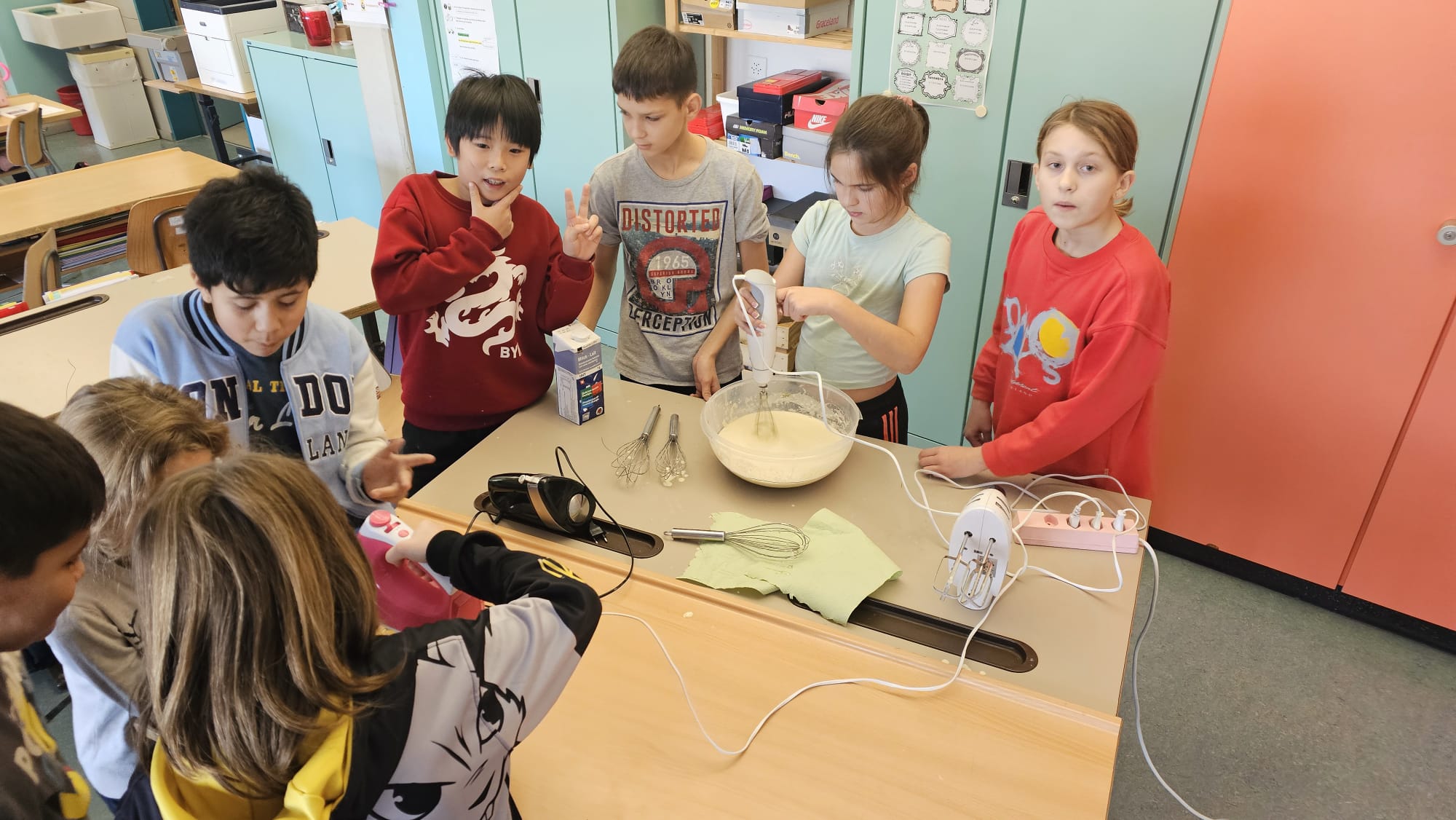 Les élèves de la 7P/LU3 accompagnés de leurs enseignants Flaviano Diego et Cottier Coralie ont tenu un stand de crêpes et vente de thés au marché de Lucens. L’enseignant souligne le travail formidable qui a été réalisé par les élèves. Ils ont été dans la peau d’un épicier en pesant le thé, préparant les sachets et collant les étiquettes. Ils ont également enfilé la casquette du cuisinier pour préparer plus de 10 litres de pâte à crêpes. Cette préparation a permis de réaliser de nombreuses et savoureuses crêpes que grands et petits ont pu savourer au marché de Lucens.