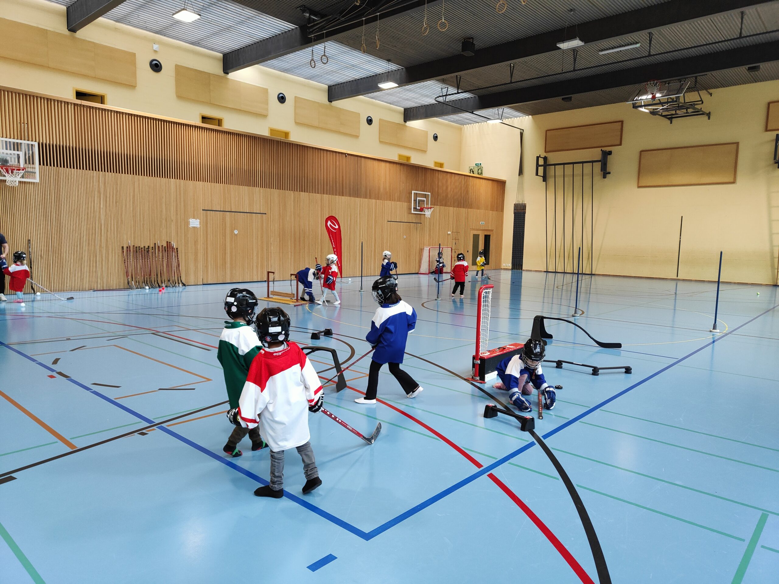 Quelle belle découverte pour eux ! Ils ont pu jouer, travailler leur équilibre et manier la canne. Peut-être que cela créera de nouvelles vocations. Autant les enseignantes que les élèves ont apprécié cette animation. Merci Christoph et “Swiss Ice Hockey”.