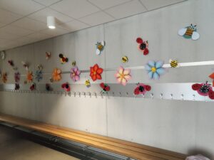 “Un banc de l’amitié” a été inauguré début novembre dans la cour de récréation des élèves de la 1P à la 3P. Il ne s’agit pas réellement d’un banc mais d’un endroit dans la cour qui a été délimité avec de la peinture. Pour que tous les enfants prennent connaissance du banc de l’amitié une petite « cérémonie d’inauguration » a eu lieu et l’endroit a été décoré pour l’occasion avec des créations des élèves. Afin de s’approprier “le banc” les élèves ont appris une chanson pour le jour J et pour les préparer un conte leur a été lu en amont.