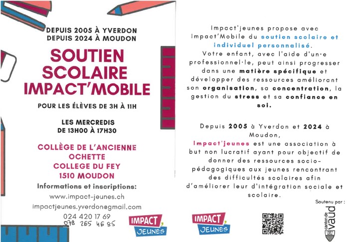 Depuis 2024, Impact’Jeunes propose un projet nommé Impact’Mobile. L’association a aménagé un bus pour proposer du soutien scolaire, qui se déplace chaque jour dans la cour d’école des établissements scolaires concernés.